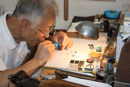- 今回の写真のモデルになってくれたのは、私の家の近所にある「天真堂」という時計屋さんのご主人です。おじさんは一級技能士の資格を持っています。撮影当日は解体した時計を組み立てるところを説明してくれながらずっと撮らせてくれました。部品が細かくて肉眼では見ることが出来ない物もあり、技術の凄さに感動しました。撮影に快く協力してくれて本当に感謝しています。