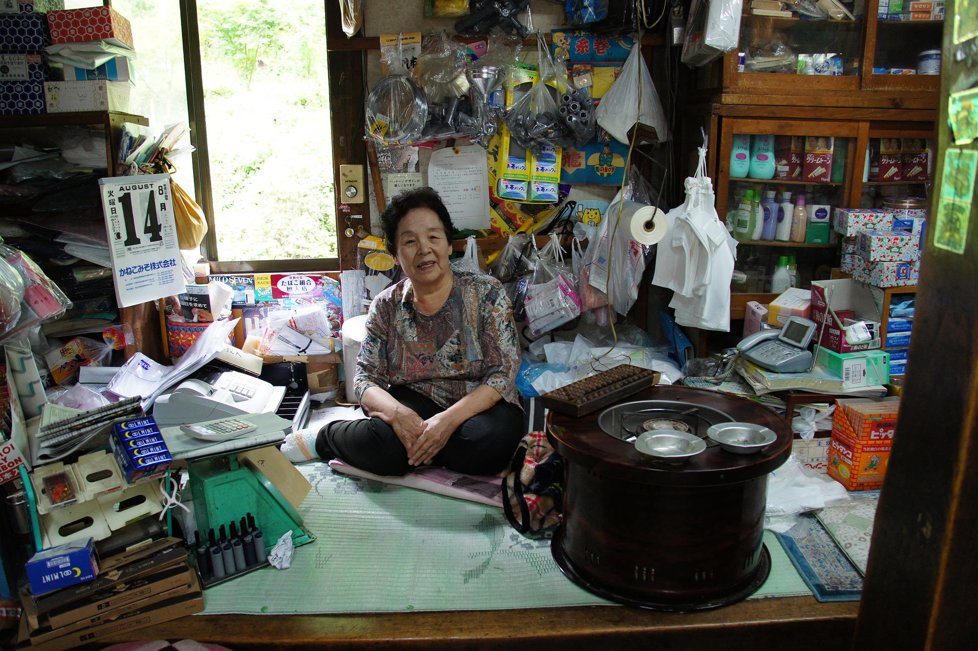 - 父の故郷に帰省する途中に立ち寄った山間の万屋。たくさんの品物の中に笑顔で座ってる店主のおばあさんが印象的で、思わずシャッターを切りました。おばあさんは足が悪いらしいのですが、辛い表情も見せず、ニッコリと微笑んでお客さんとお話をする姿は素敵でした。おばあさんの優しい表情を捉えることができたのでよかったです。