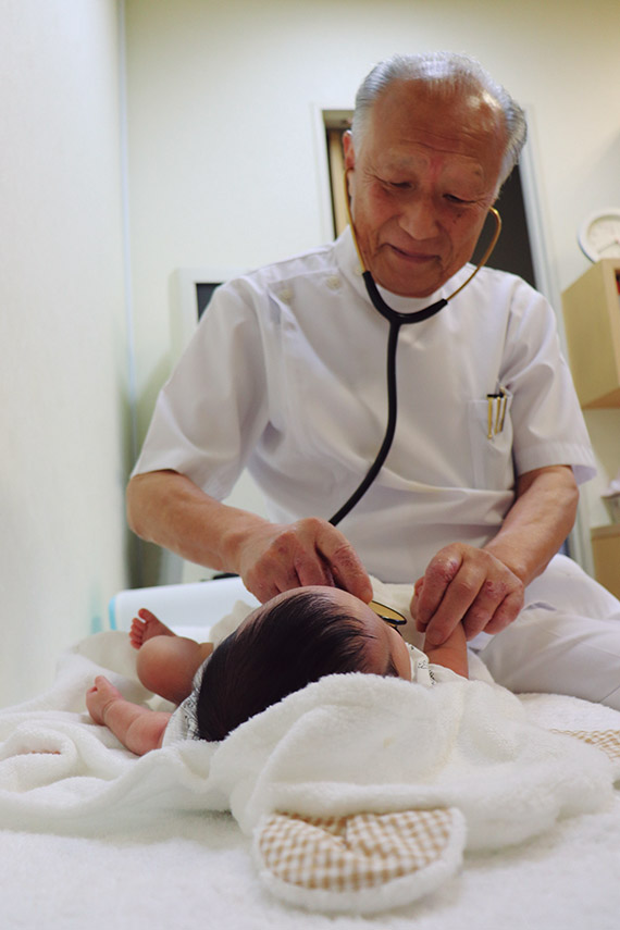 - 84歳で今なお現役で産婦人科医をやっている祖父の診察姿を初めて見ました。実際私も祖父に取り上げてもらいました。とても優しい笑顔で赤ちゃんの手を取りながら聴診器を胸に当てている姿はカッコ良かったです。